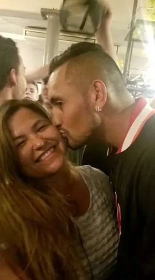 It was later revealed the journalist was Lucia Hoffman from Inside Tennis, who was actually pictured being kissed on the cheek by Kyrgios at Wimbledon’s Dog the night before.