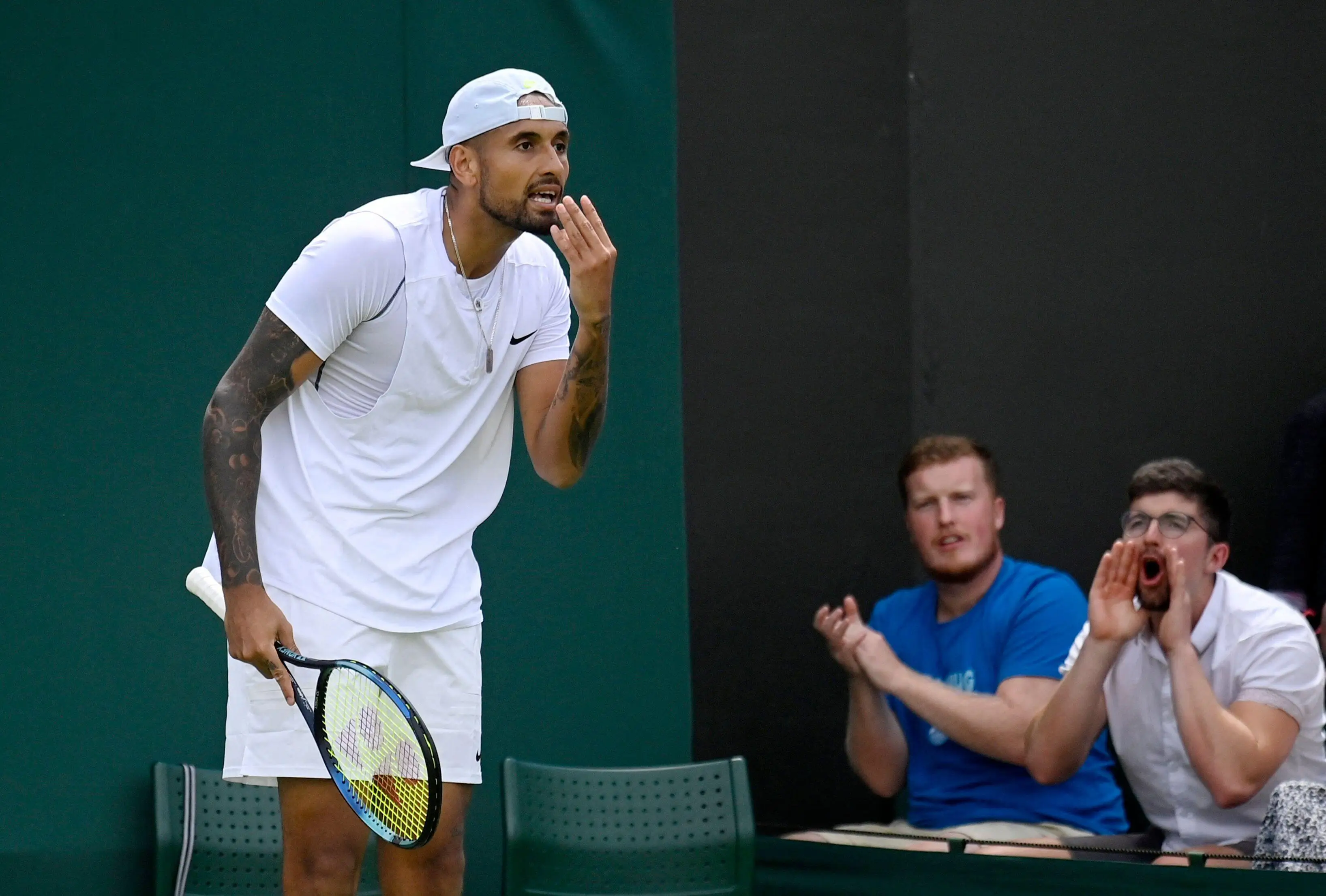 One man lived the dream of many a tennis fan by shouting at Nick Kyrgios to 'stop moaning' during his latest Wimbledon match.