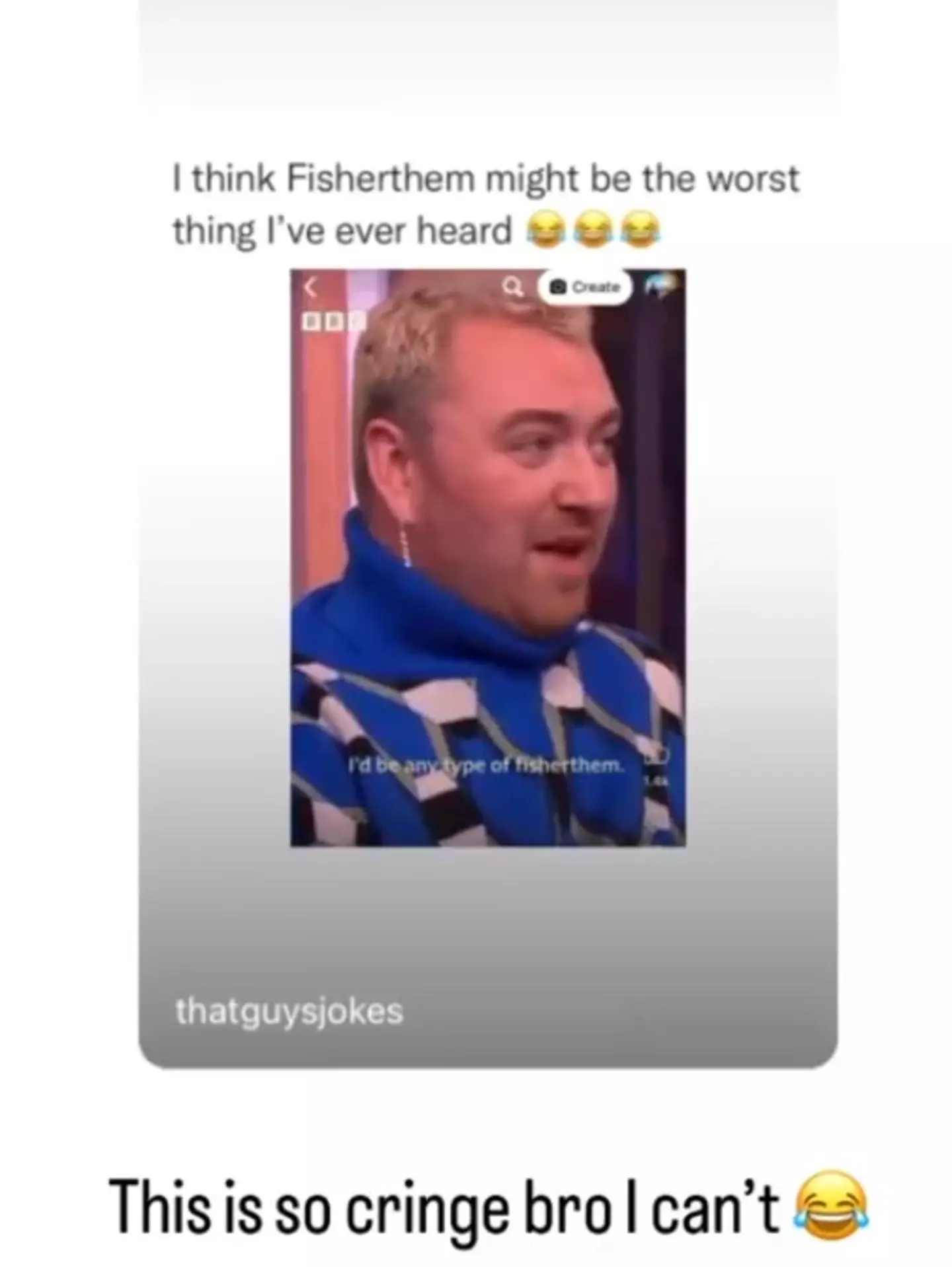 The caption on the original video read: "I think fisherthem might be the worst thing I've ever heard."