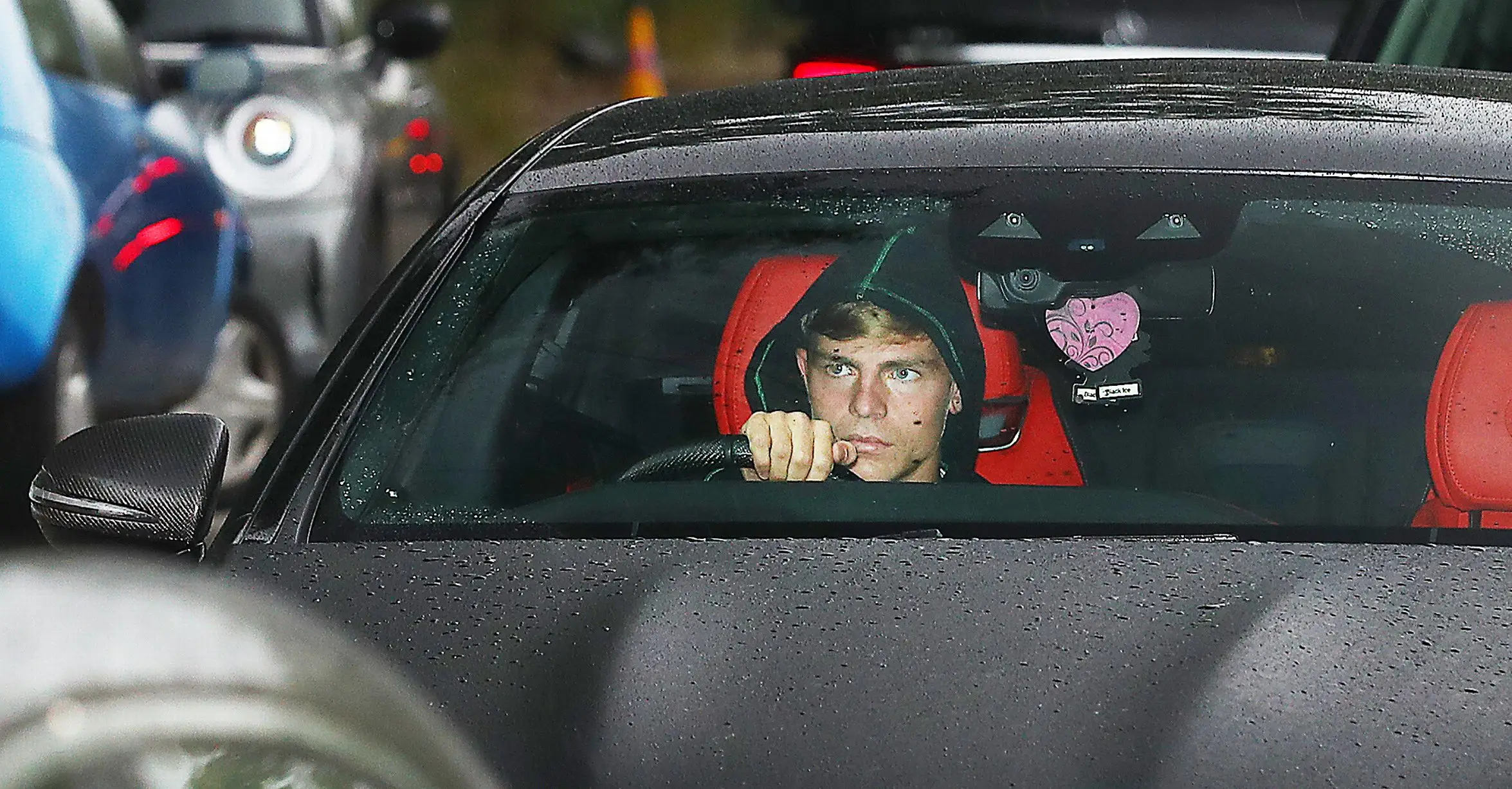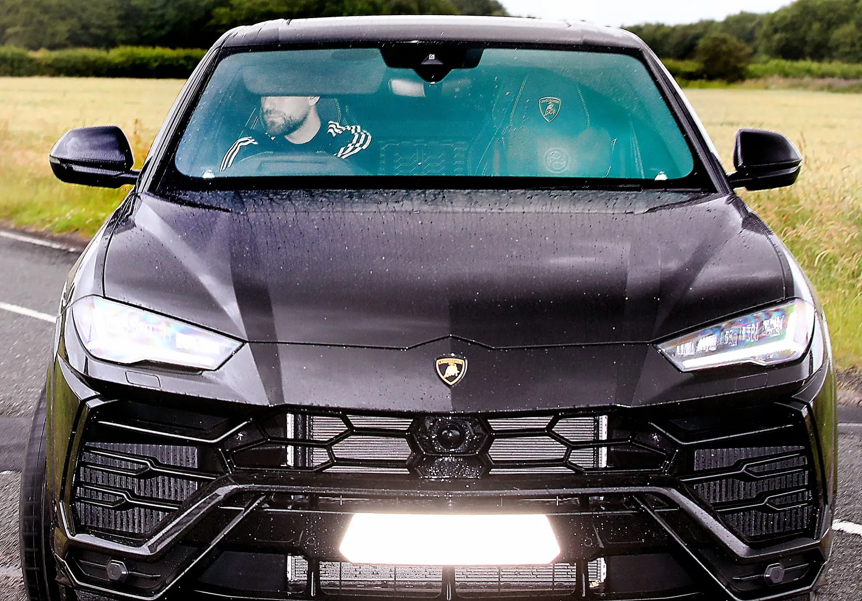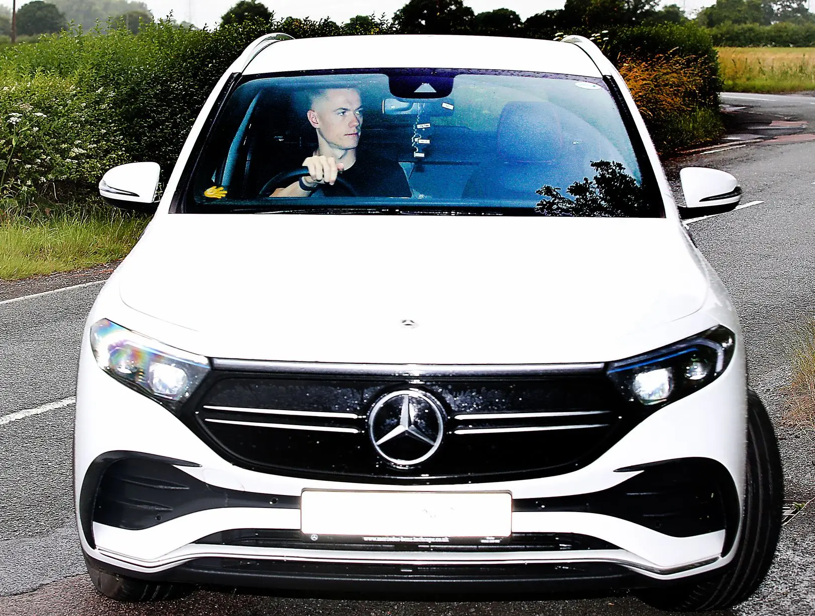 Luke Shaw enters the building with his sun visor blocking his eyes from the photograph.